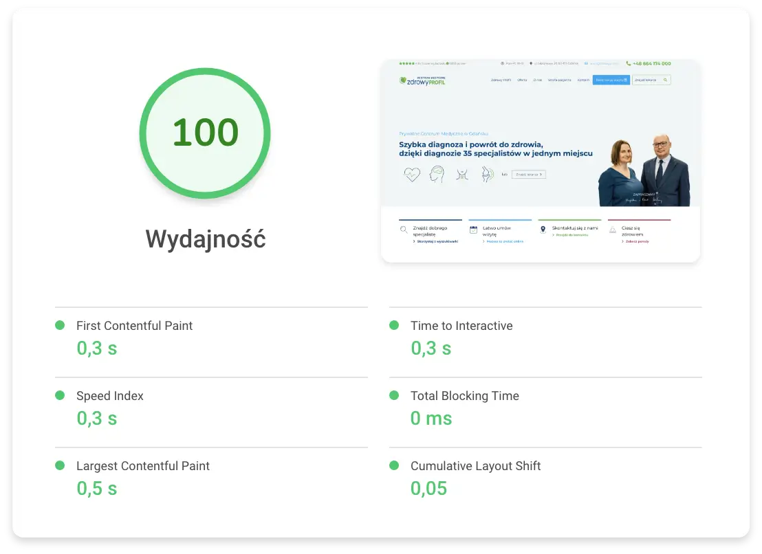 Wykonamy niezbędne zmian, zapewniając Twojej stronie świetne wyniki Web Core Vitals.